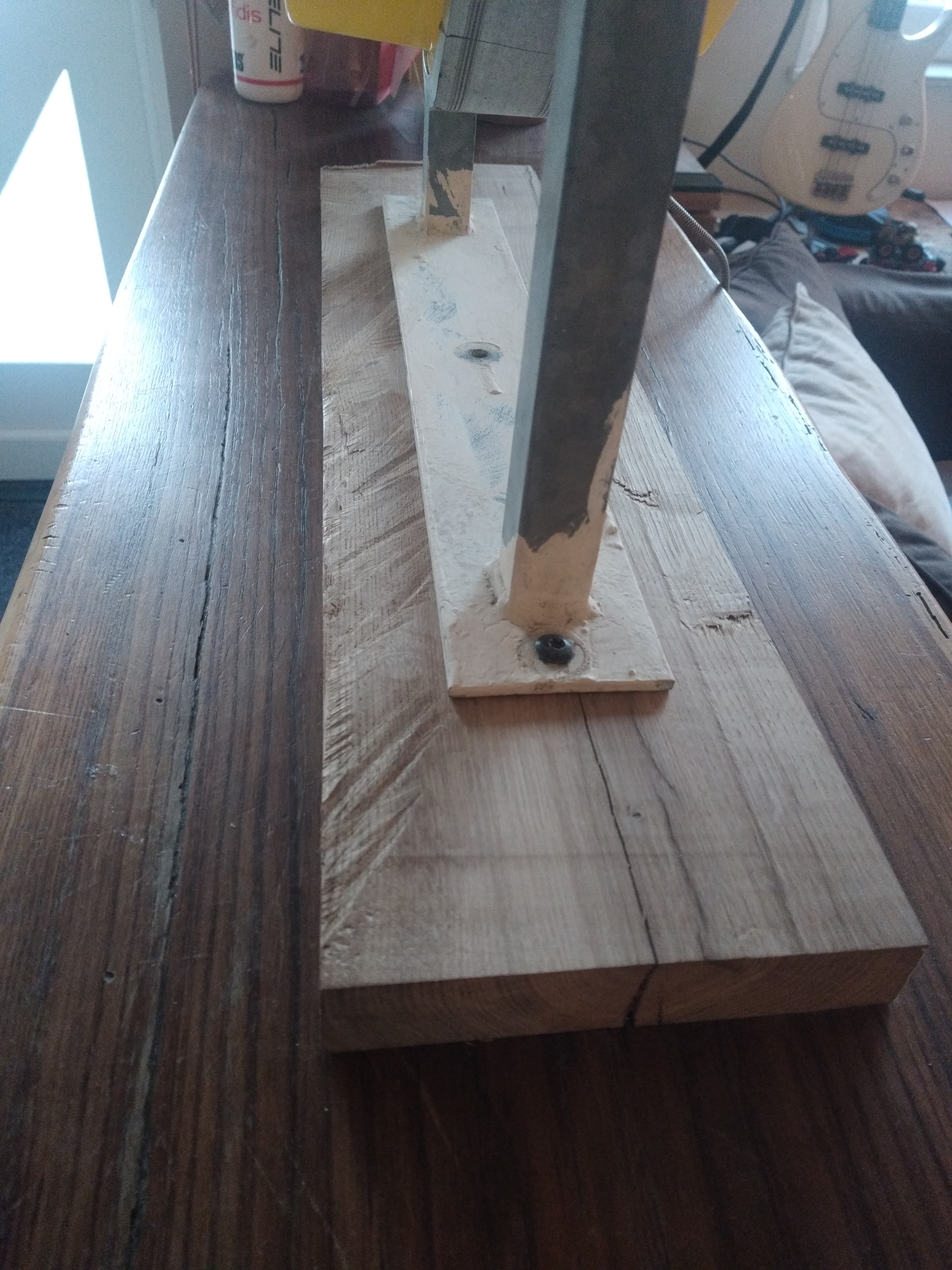Récupéré au hasard d’une livraison, j’ai sauvé cette enseigne de la déchetterie. Un bon nettoyage, le remplacement du système lumineux par un néon led et c’est reparti pour une seconde vie. Le petit plus c’est le support en chêne issu d’un projet précédent.